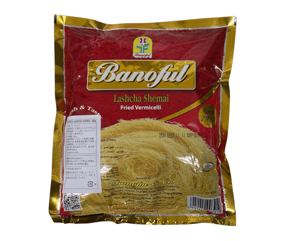 Banoful Lashcha Shemai Fried Vermicelli is a premium-quality traditional vermicelli made from fine wheat strands and lightly fried to enhance its rich aroma and golden colour. Popular in South Asian cuisine, especially during festive occasions, this vermicelli is perfect for preparing delicious sweet and savoury dishes.