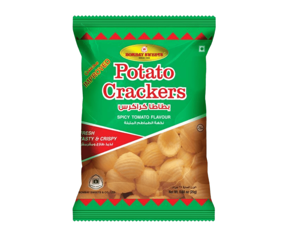 Bombay Sweets Potato Crackers are light, crispy, and delicious snack chips made from quality potato ingredients. With their crunchy texture and savoury flavour, they are perfect for quick snacking anytime, anywhere.